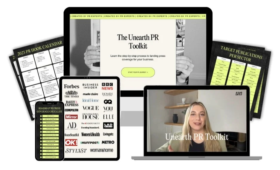 The Unearth PR Toolkit has everything you need to land press coverage for your business, including 20 step-by-step video tutorials guided by a PR expert.
